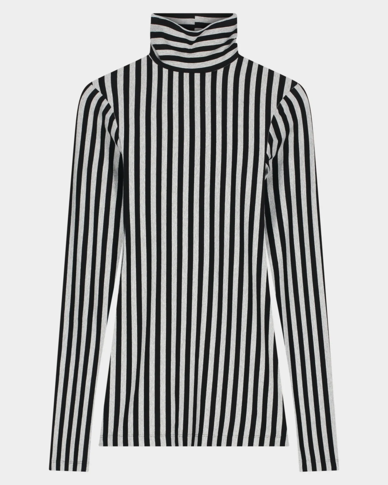 De Ani Pulli heeft een nauwsluitende pasvorm en een hoge hals, afgewerkt met een opvallend streepdessin. Ideaal om je outfit een stijlvolle touch te geven, vooral in combinatie met de bijpassende flared broek.