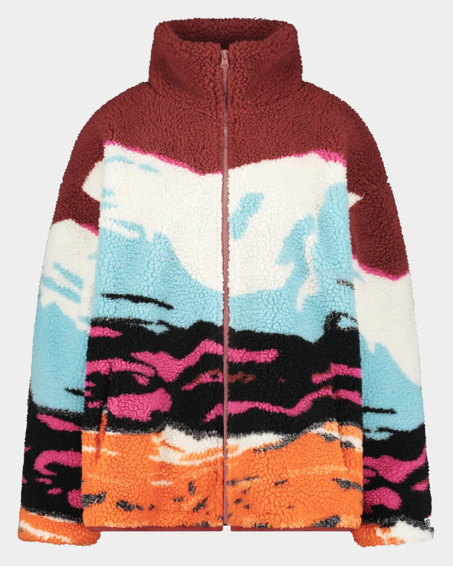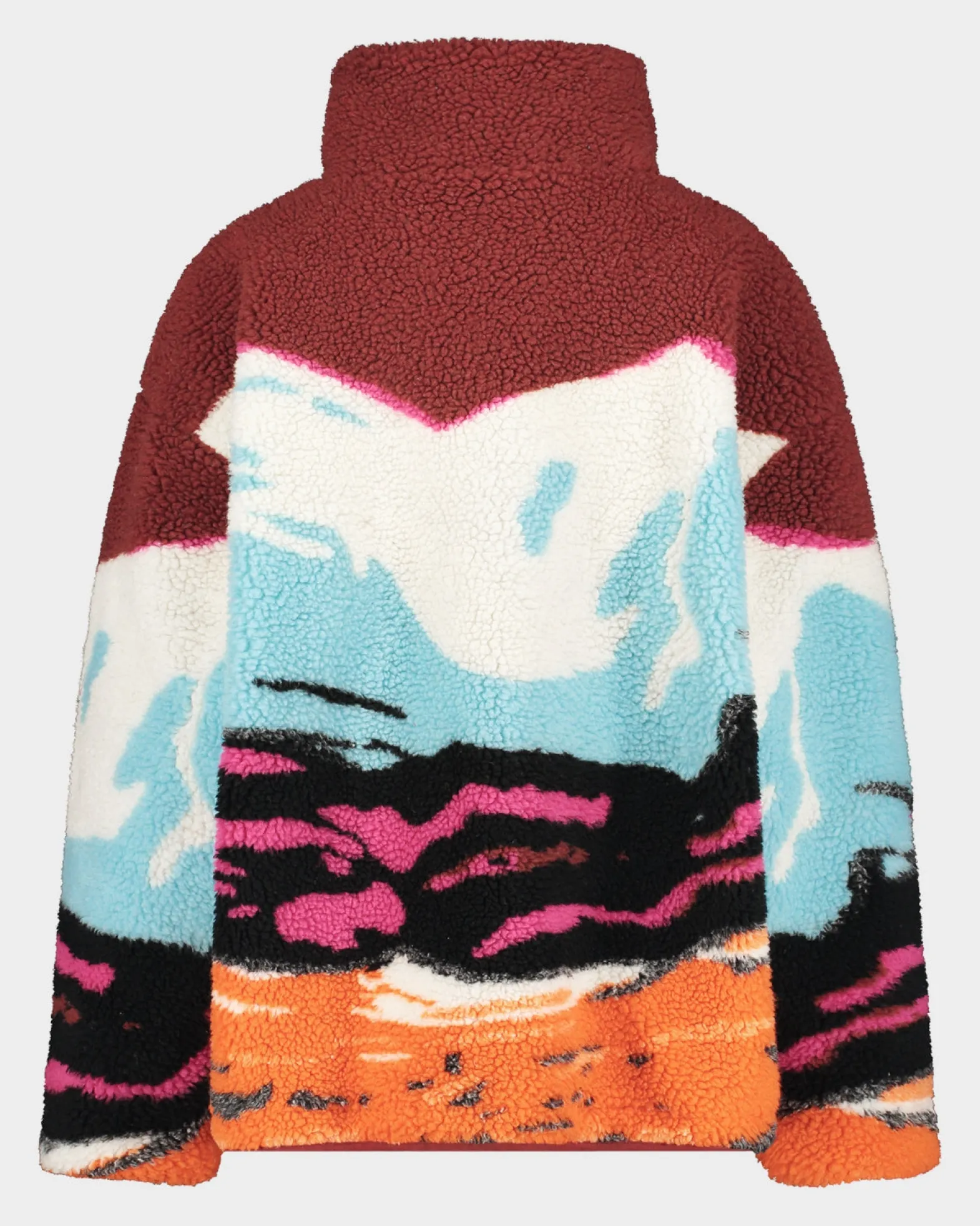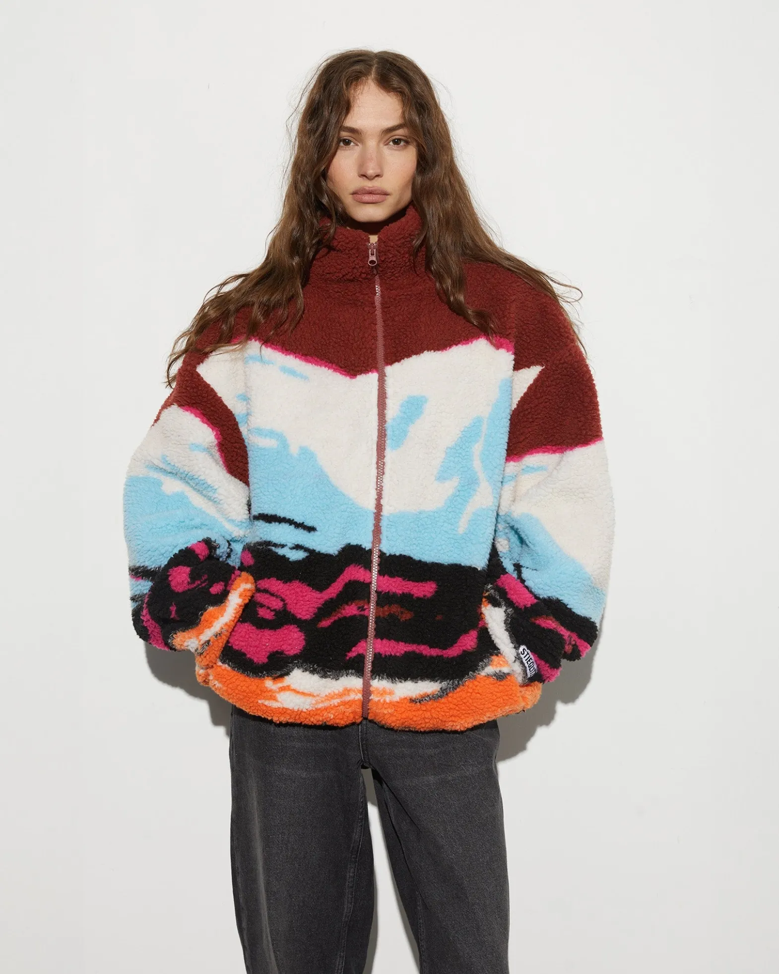 De Meki Jacket is een oversized teddyjack met een uniek berglandschap design. Deze warme en stijlvolle jas voegt een avontuurlijke touch toe aan je garderobe en zorgt voor een opvallende look.